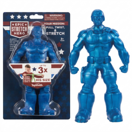 This stretchable military action figure can be pulled up to 3x his original size of 24 inches. Always returns to its original shape and form for continuous play and tactile engagement. Each soldier is neatly contained in a military-themed 10.24 x 5.91-inch blister packet. Packs of 8 blister cards are available to purchase. Available in green or blue. Perfect item for military-themed events, party stores, party favors, grab and go, and more.